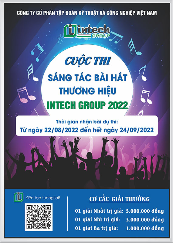 Tập đoàn Intech, Băng tải Intech xin thông báo phát động cuộc thi sáng tác bài hát thương hiệu với mục đích tạo ra một ca khúc nhạc hiệu công ty, truyền tải tầm nhìn và sứ mệnh của doanh nghiệp bằng những giai điệu và ca từ dễ đi vào lòng người, dễ nhớ. Bản “hùng ca” doanh nghiệp. sẽ khắc sâu vào nhận thức và khơi dậy niềm tự hào trong toàn thể đội ngũ nhân viên về những giá trị mà doanh nghiệp đang theo đuổi.